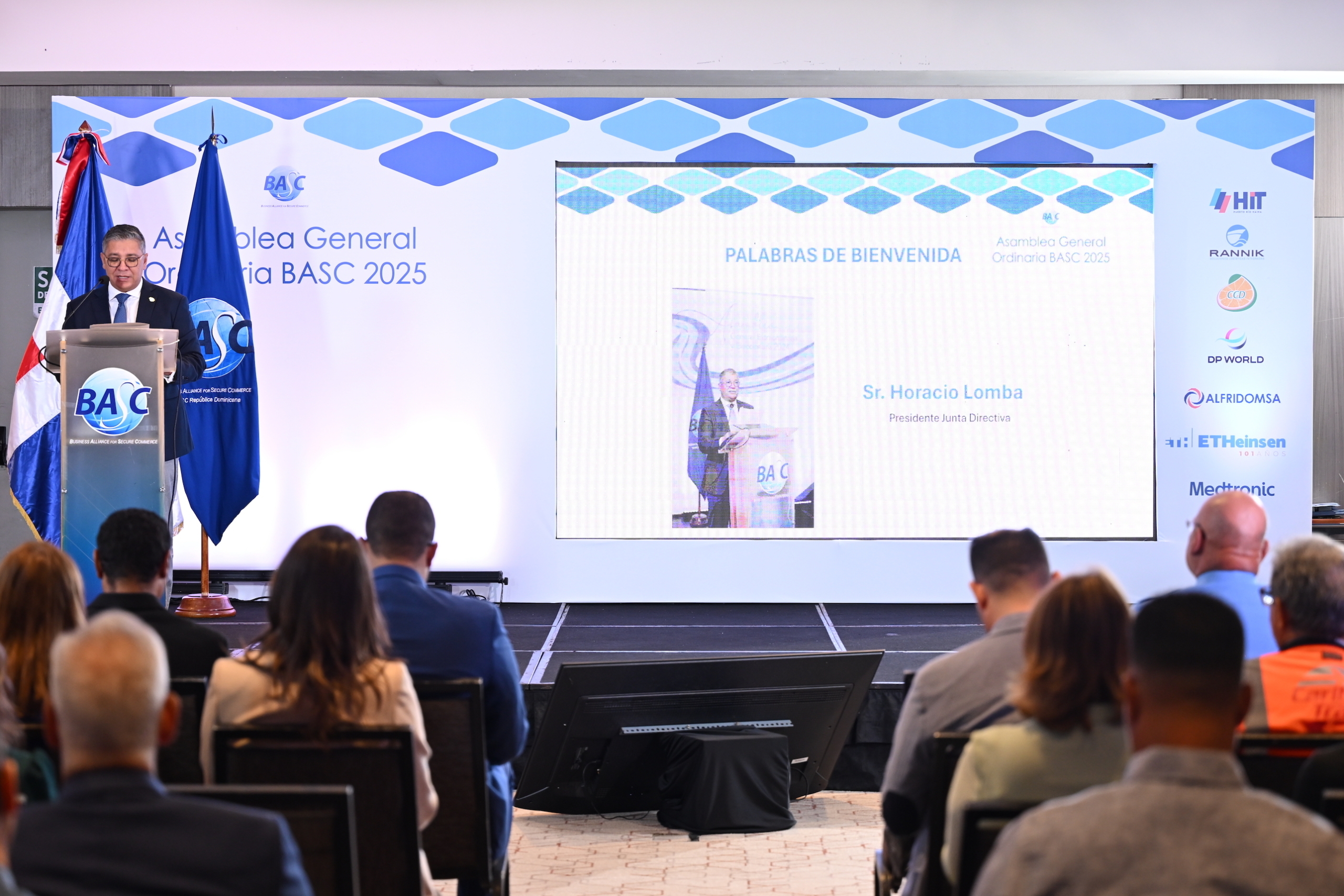 El capítulo BASC Domincana celebró el pasado lunes 28 de Abril su Asamblea General Ordinaria 2025 En un escenario internacional complejo, marcado por tensiones geopolíticas, crisis climática y desafíos logísticos, el país reafirmó su liderazgo regional en seguridad del comercio internacional. Así lo destacó el presidente del capítulo local de la Business Alliance for Secure Commerce (BASC Dominicana), Horario Lomba, durante la entrega de certificaciones de la norma BASC a 53 entidades nacionales.