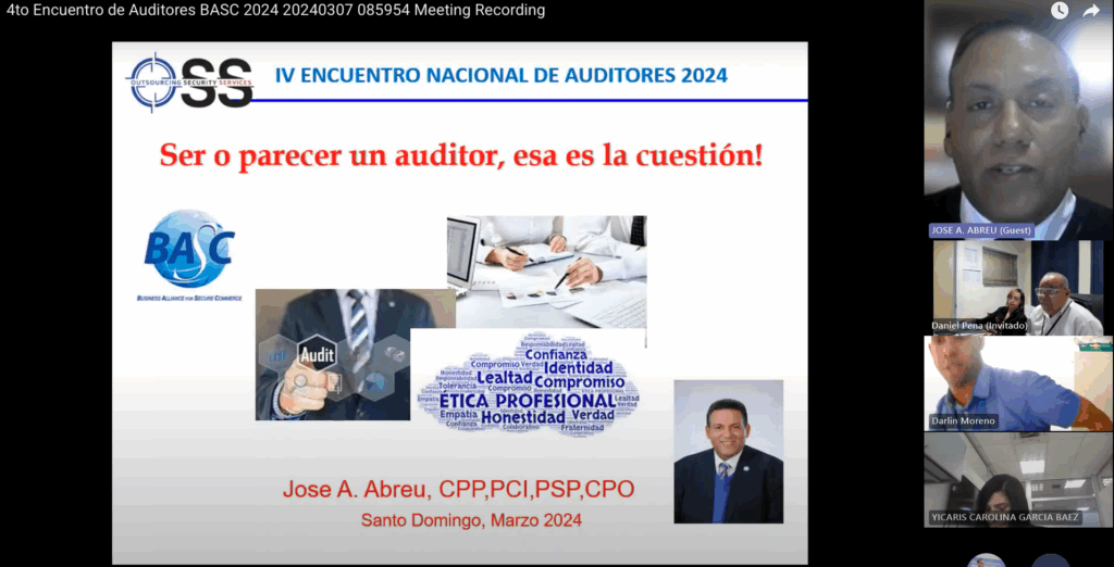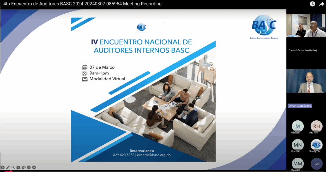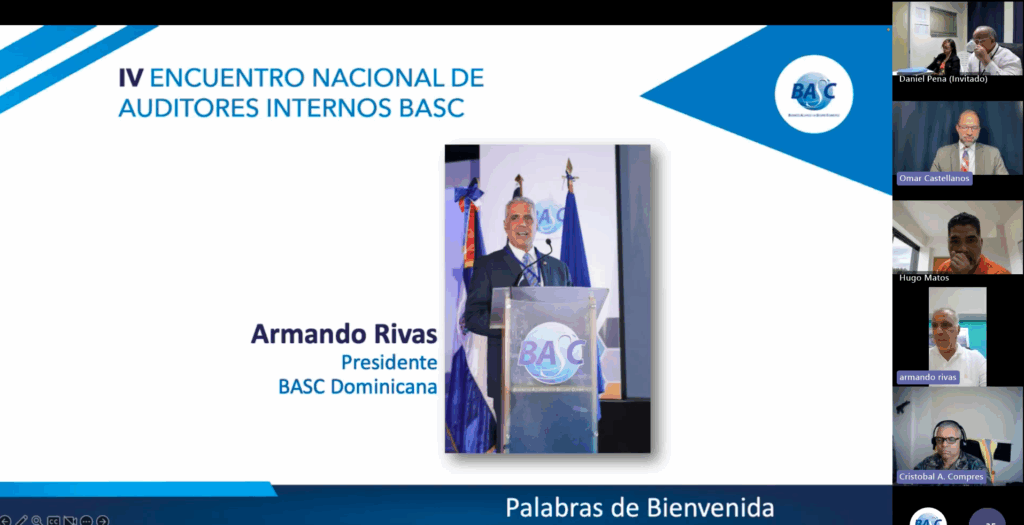 El pasado 7 de Marzo el capítulo BASC para Repúbica Dominicana celebró su tradicional Encuentro Nacional de Auditores BASC en su 4ta entrega, como parte de la gestión para el mantenimiento y mejora del Sistema de Gestión en Control y Seguridad (SGCS), para su membresía, colaboradores y partes interesadas relacionadas. Dicho evento fue realizado de 09:00 AM a 1:00 PM de manera virtual. A este evento se conectaron cerca de 100 Auditores BASC, que son los embajadores y oficiales de cumplimiento en las empresas afiliadas, asi como responsables de procesos y sistemas de gestión OEA, CTPAT y otras normas de referencia.