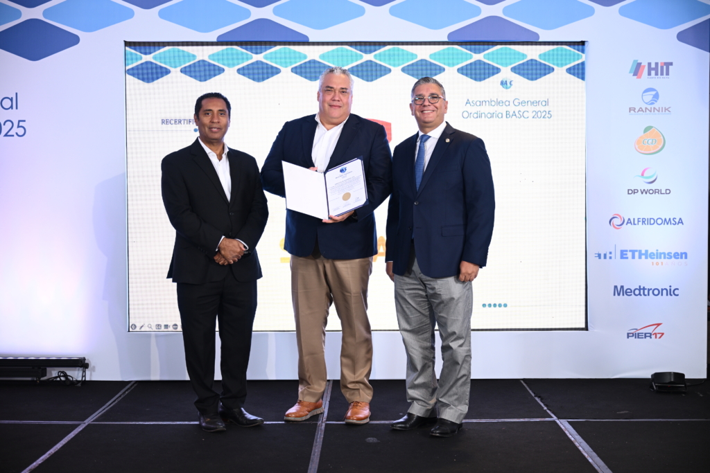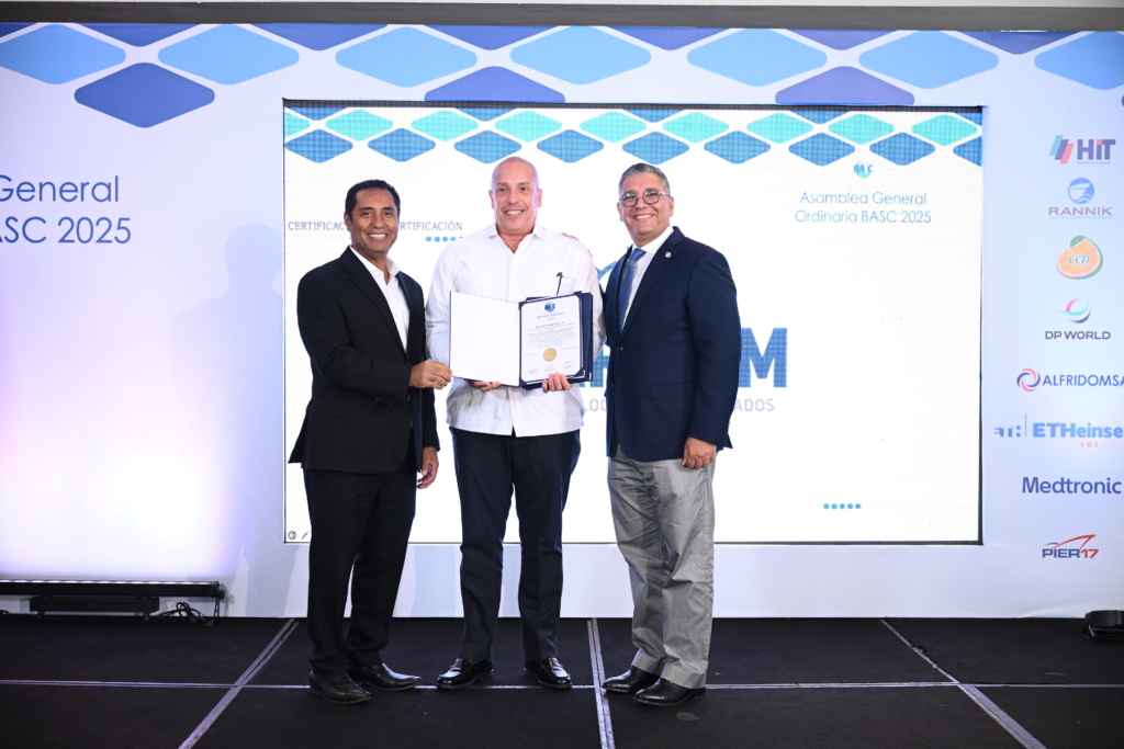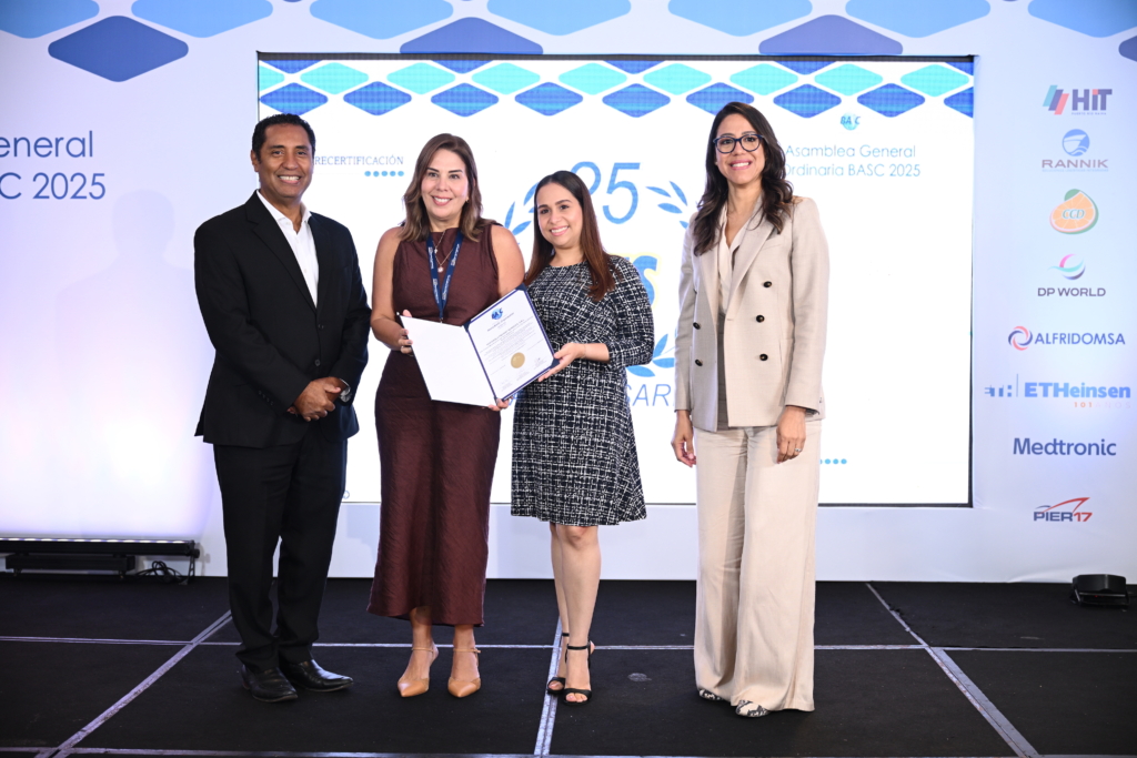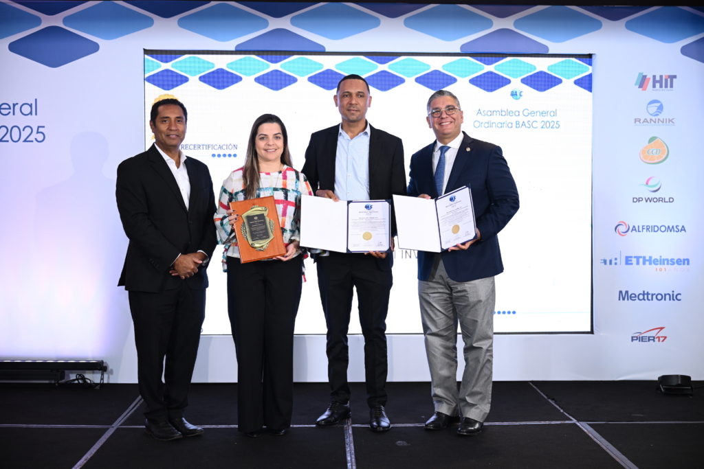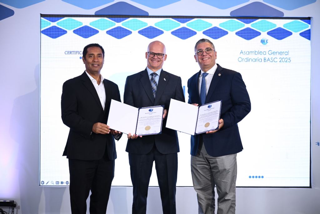 El capítulo en el país de la Alianza Empresarial para un Comercio Seguro (BASC, por sus siglas en inglés) hizo entrega de su certificación internacional en el marco de la Asamblea General Ordinaria, realizada el pasado lunes 28 de abril, en el Hotel El Embajador de esta ciudad.