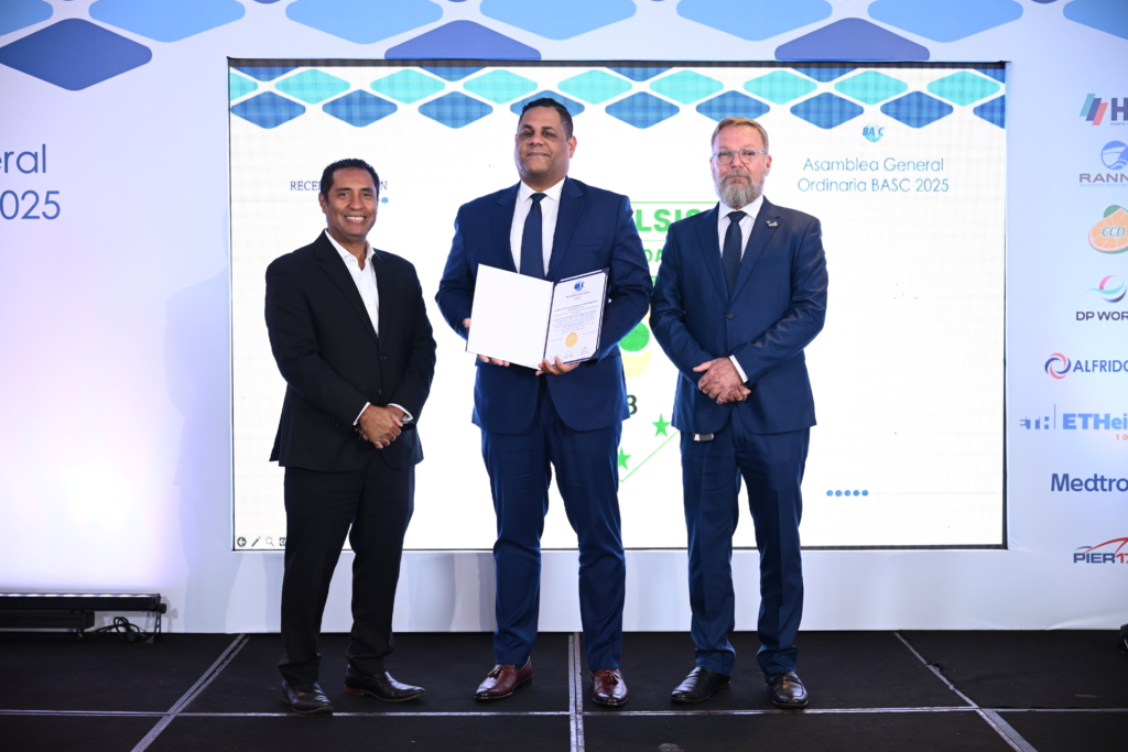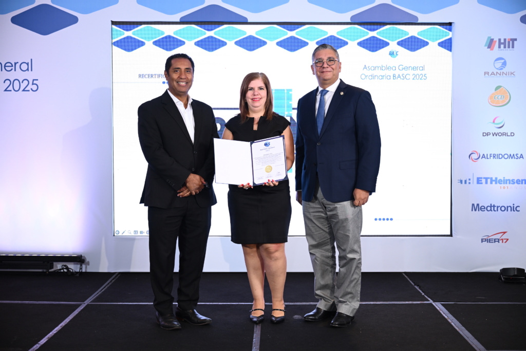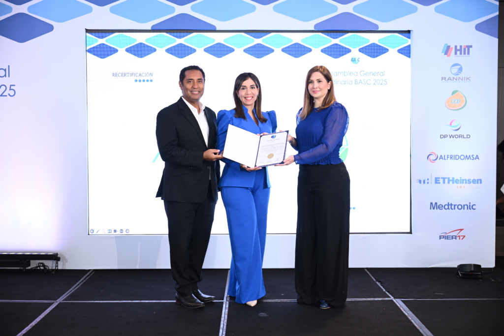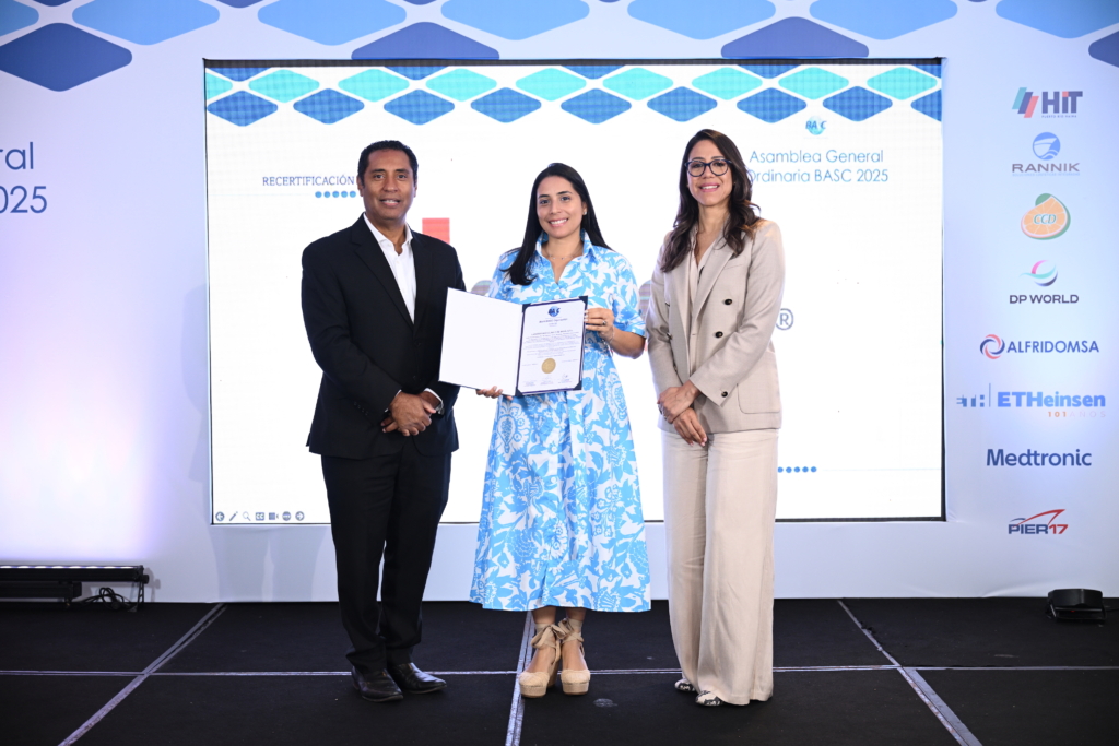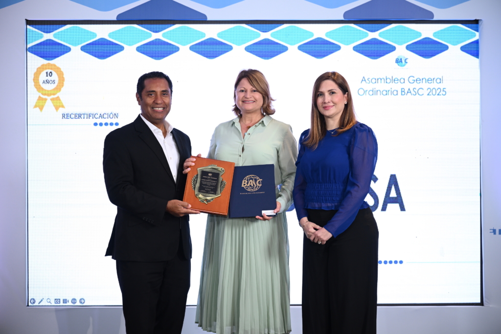 El capítulo en el país de la Alianza Empresarial para un Comercio Seguro (BASC, por sus siglas en inglés) hizo entrega de su certificación internacional en el marco de la Asamblea General Ordinaria, realizada el pasado lunes 28 de abril, en el Hotel El Embajador de esta ciudad.