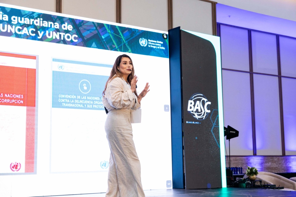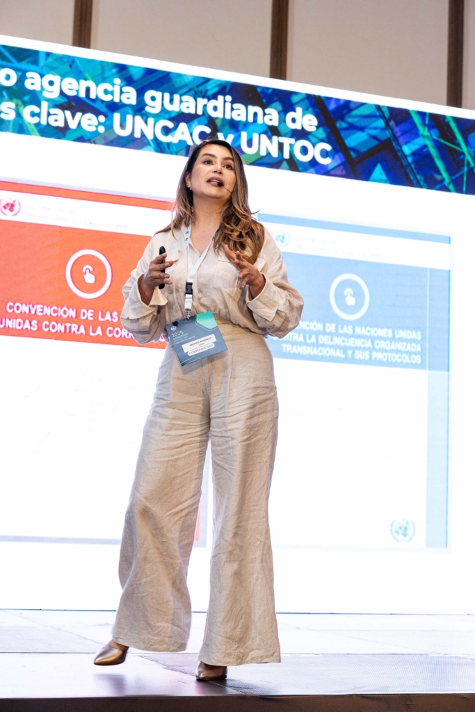 Andrea Agudelo invitada internacional que ocupa la posición de Jefe Regional de Programas de Anticorrupción contra el Lavado de Activos de la Oficina de las Naciones Unidad contra las Drogas y el Delito (UNODC) para la región Andina y el Cono Sur y observadora permanente del Grupo de Acción Financiera de Latinoamérica (GAFILAT). Agudelo abordó todo lo relacionado a temas de derecho comercial, financiero y bursátil, así como en la promoción de la ética y la integridad en el servicio público y la prevención y sanción de la corrupción y sus vínculos con el crimen organizado, incluyendo el tráfico de drogas, el contrabando, los delitos fiscales, entre otros.