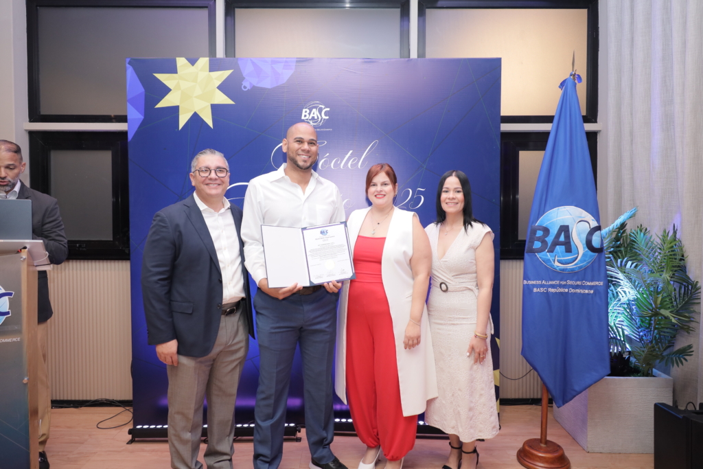 Durante el evento el Sr. Lomba entregó una placa de reconociemiento al Sr. Rolando Ventura, miembro honorífico y vocal de la Junta Directiva, “por sus valiosos aportes a la generación de confianza en el comercio internacional, en nombre de BASC Dominicana y toda su membresía”.