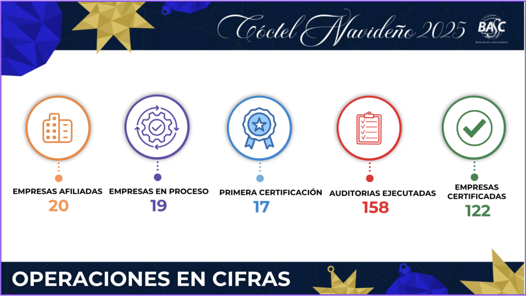BASC Dominicana festejó el pasado 11 de Diciembre 2025 su tradicional Cóctel Navideño BASC, donde se dieron cita los representantes de las empresas certificadas, aliados estratégicos, representantes de la Junta Directiva, auditores de certificación y otros invitados especiales para celebrar el cierre de año de gestión correspondiente.