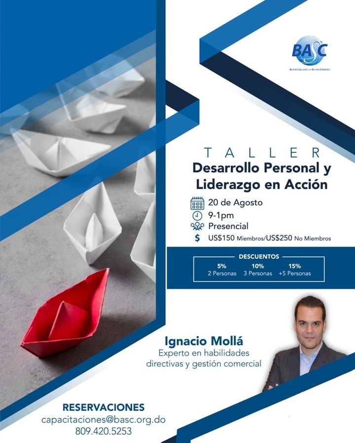 BASC Dominicana invita a su próximo taller especializado sobre “Desarrollo Personal y Liderazgo en Acción” a realizarse el miércoles 20 de agosto 2025.