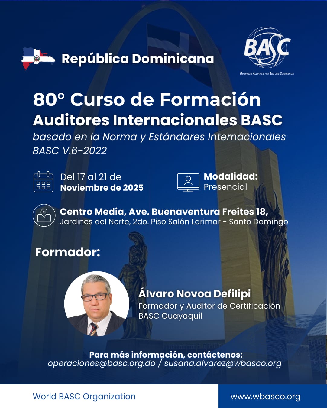 Santo Domingo, RD Santo DomingoIntroducción World BASC Organization (WBO), aplicando los más altos estándares en seguridad en el comercio nacional e internacional y como resultado de las alianzas y compromisos generados con los gobiernos, aduanas, autoridades de control y organismos internacionales, ha puesto en vigencia su Norma y Estándares Internacionales BASC Versión 6-2022. En miras a cumplir su objetivo […]